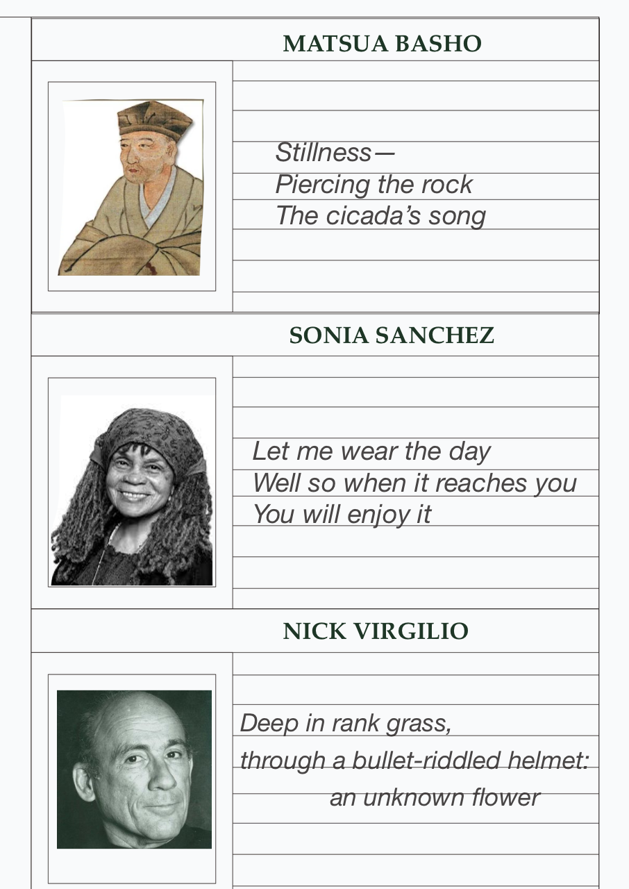 In the West, haiku was first introduced as “nature poetry,” but poets of many cultures have expanded the form to include: